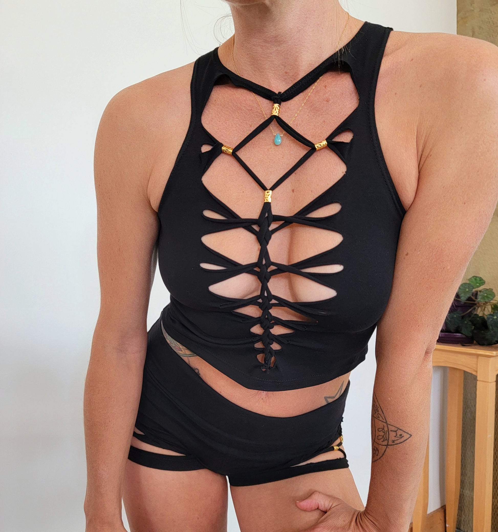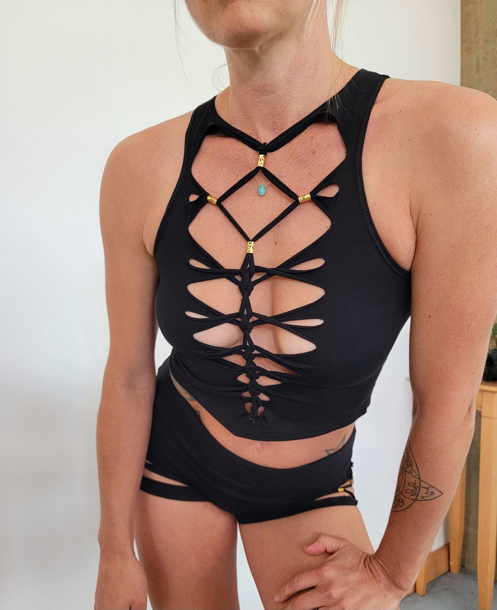 Bliss Braided Crop Tank Top, crop tank, festival shirt, pole dance, slit weave, hoop fashion