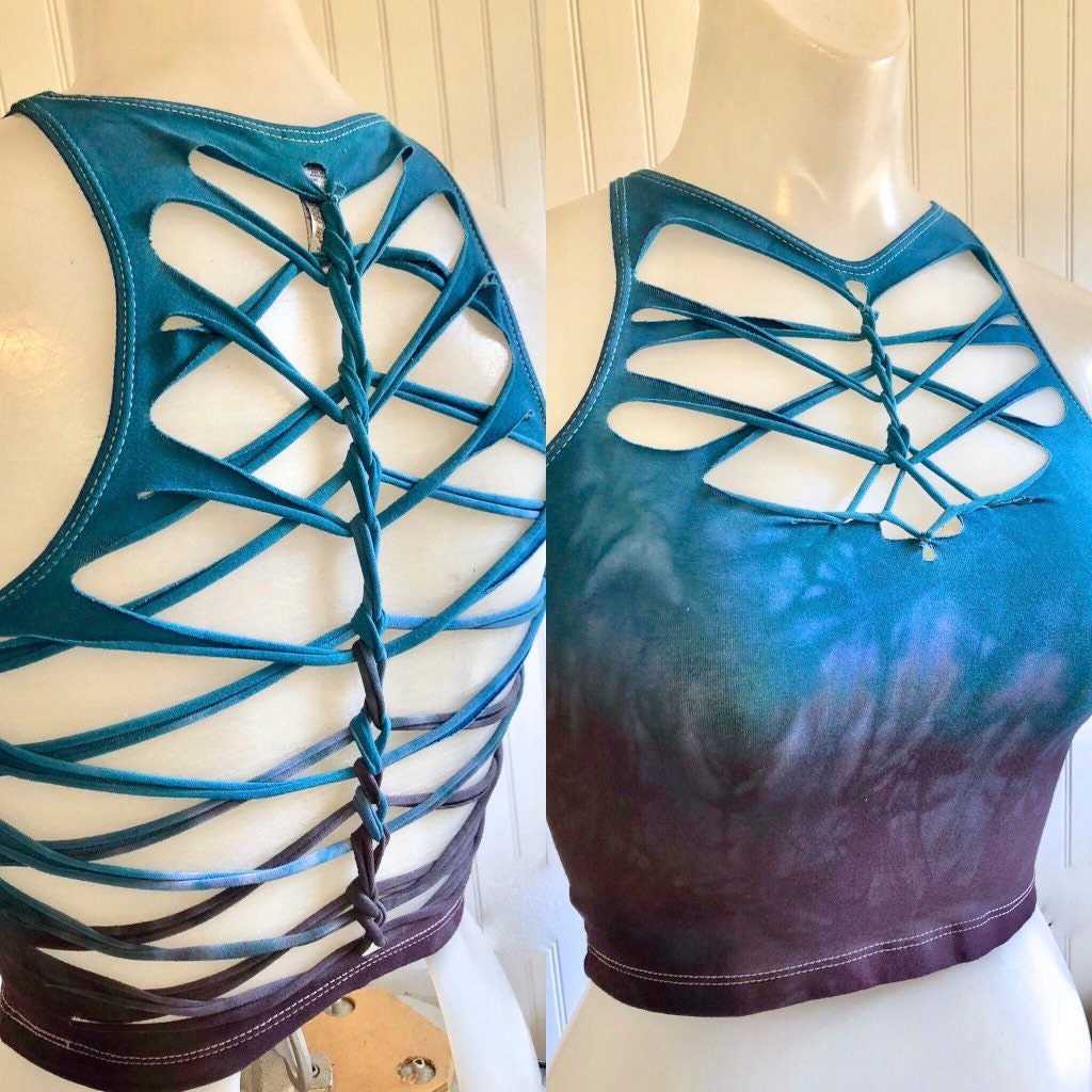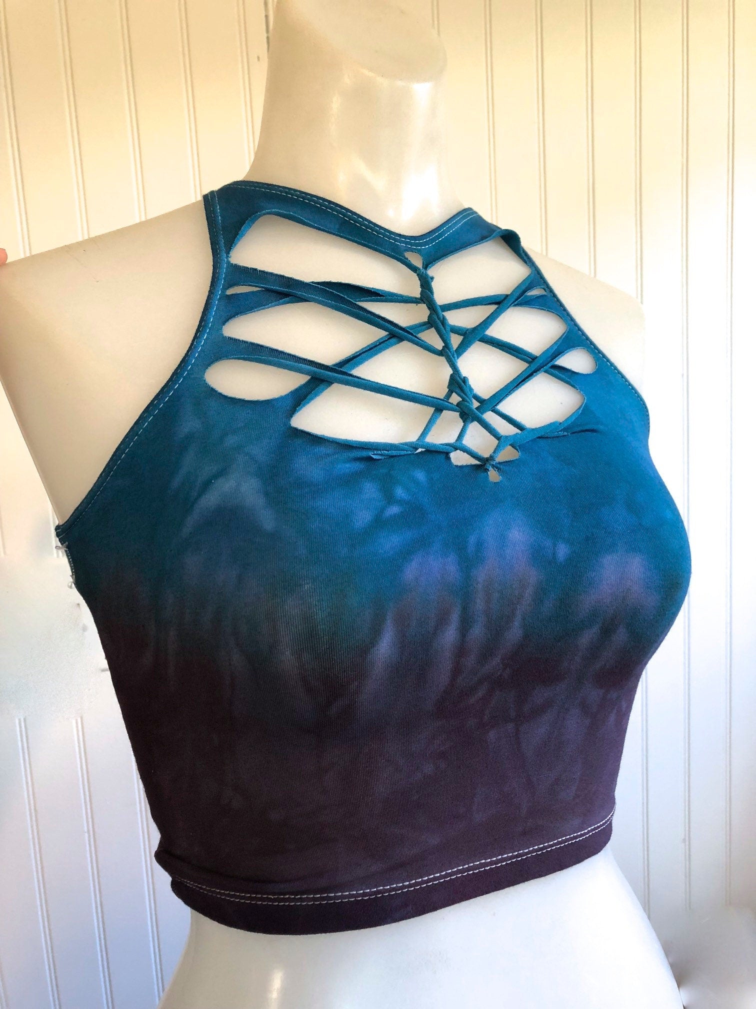 Blue Cherry Warrior Hand Dyed Crop Top Open back Yoga Tank