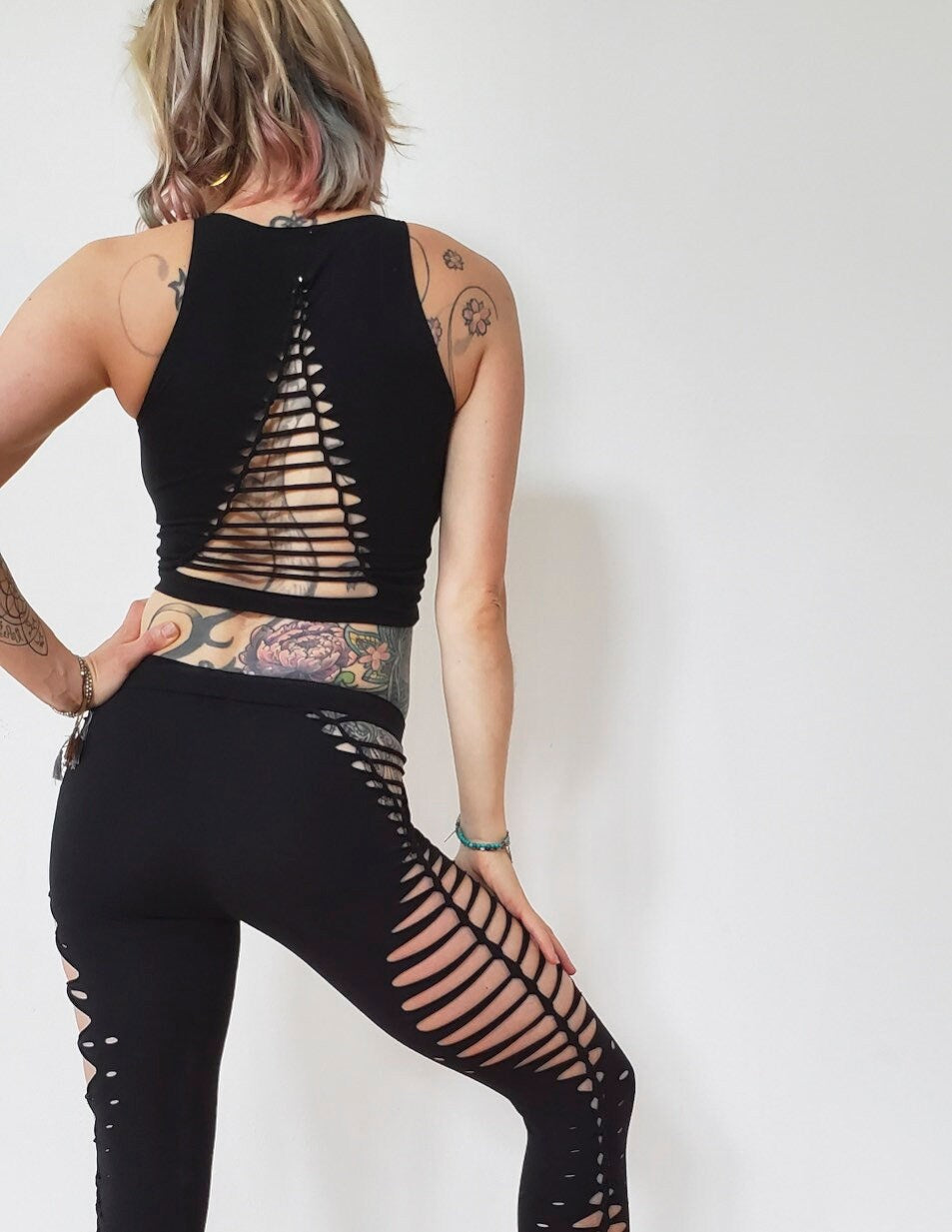 Your next festival favorite has been found, make a sexy statement at that pole class. this crop tank has a sexy open cut up design on the back and the front.