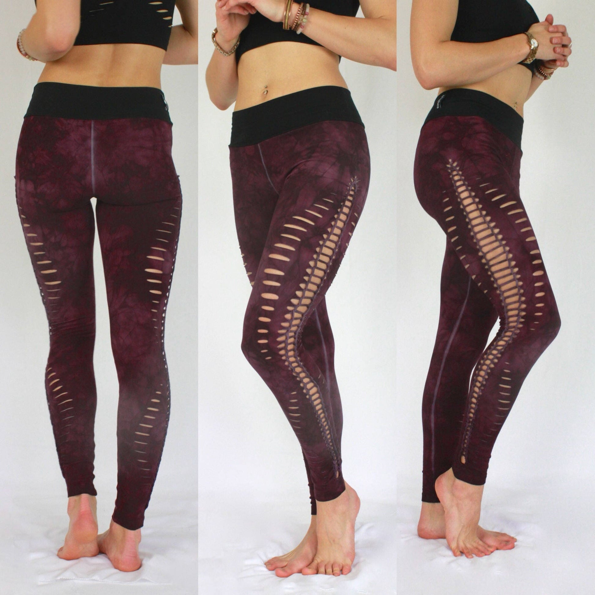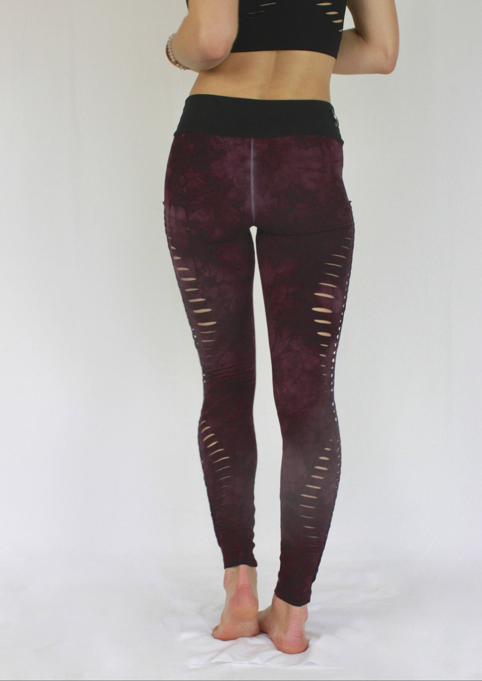 Braided Yoga Leggings Hand Dyed "Black Cherry" /Festival//dance