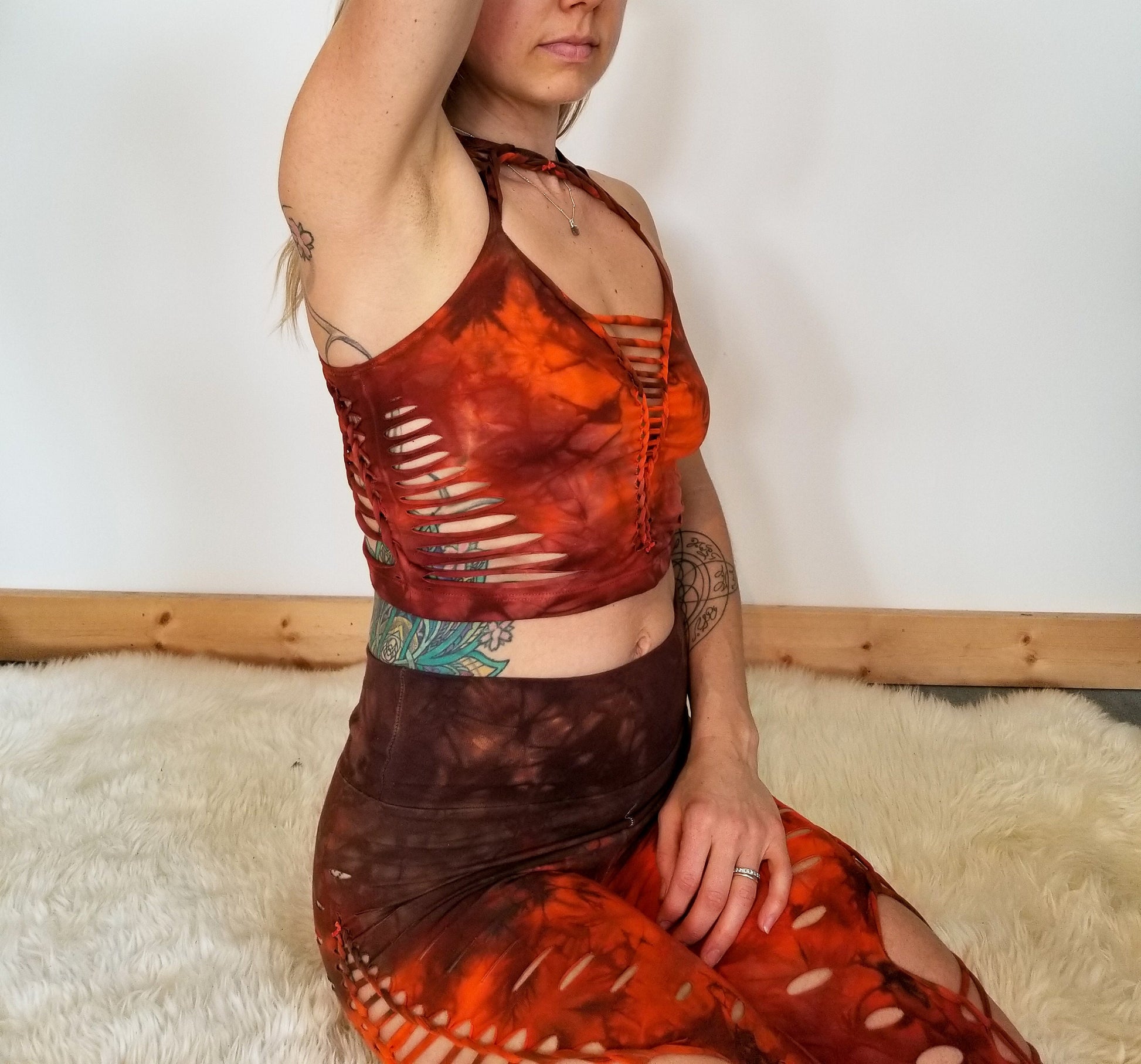Brown Rust Crop top Hand dyed Yoga Slit weave Fire hula hoop