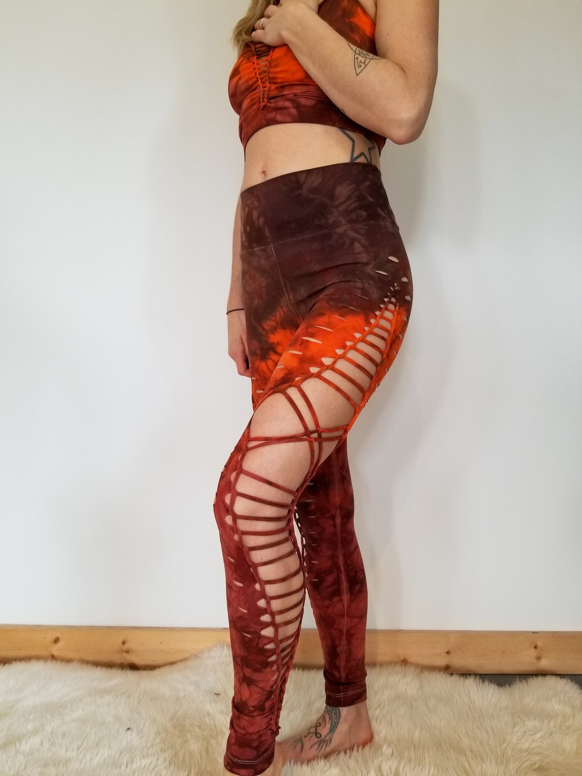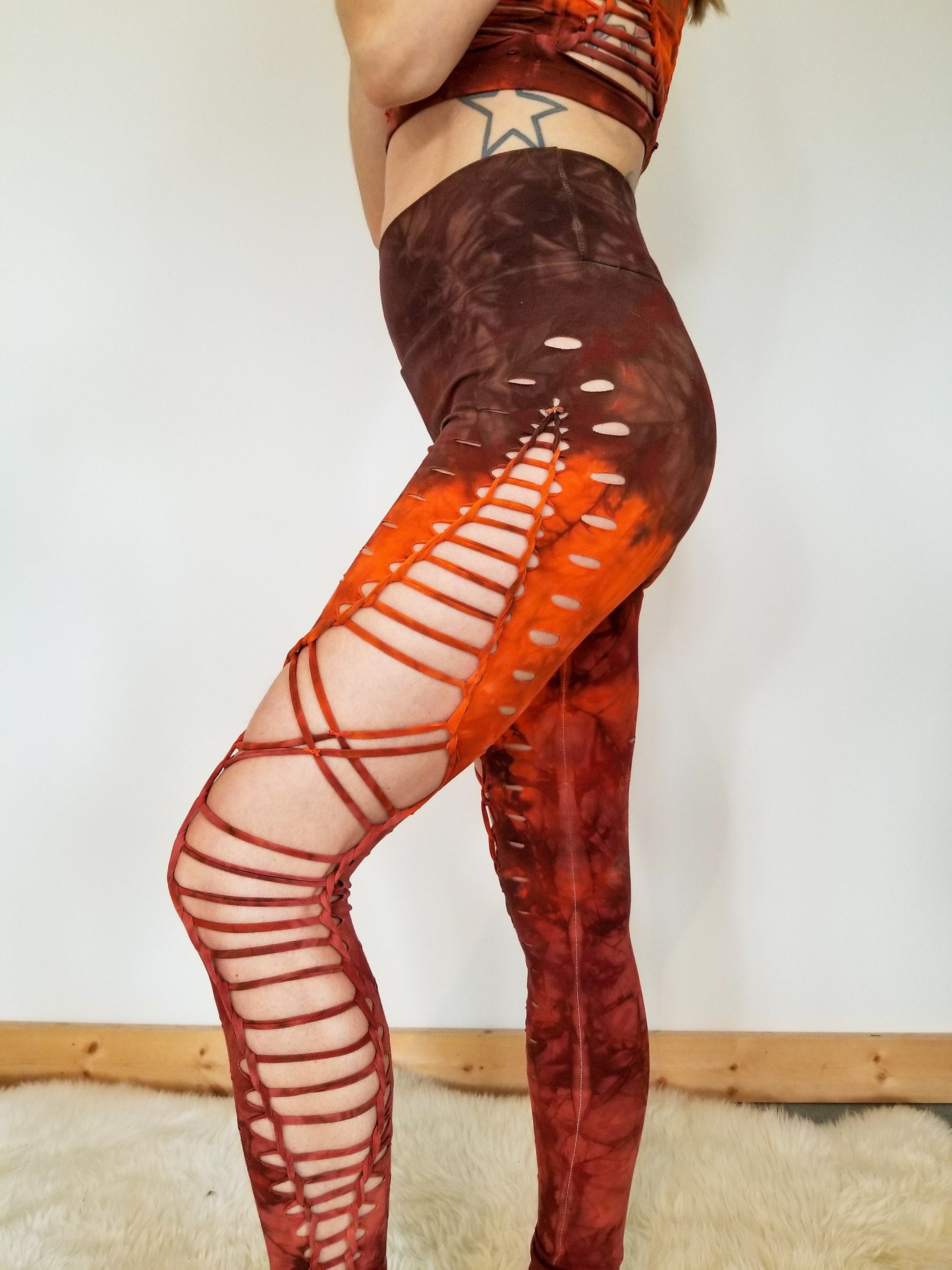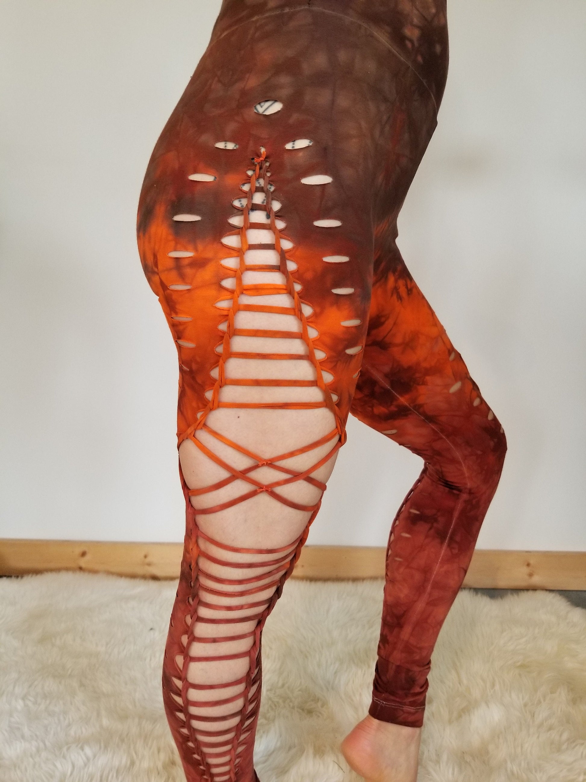 Brown Rust Hand Dyed Braided leggings yoga leggings, gift for her, festival wear, fire safe