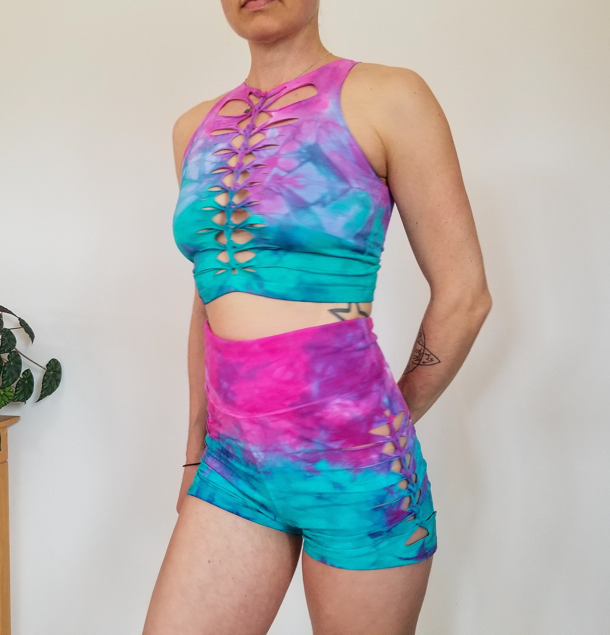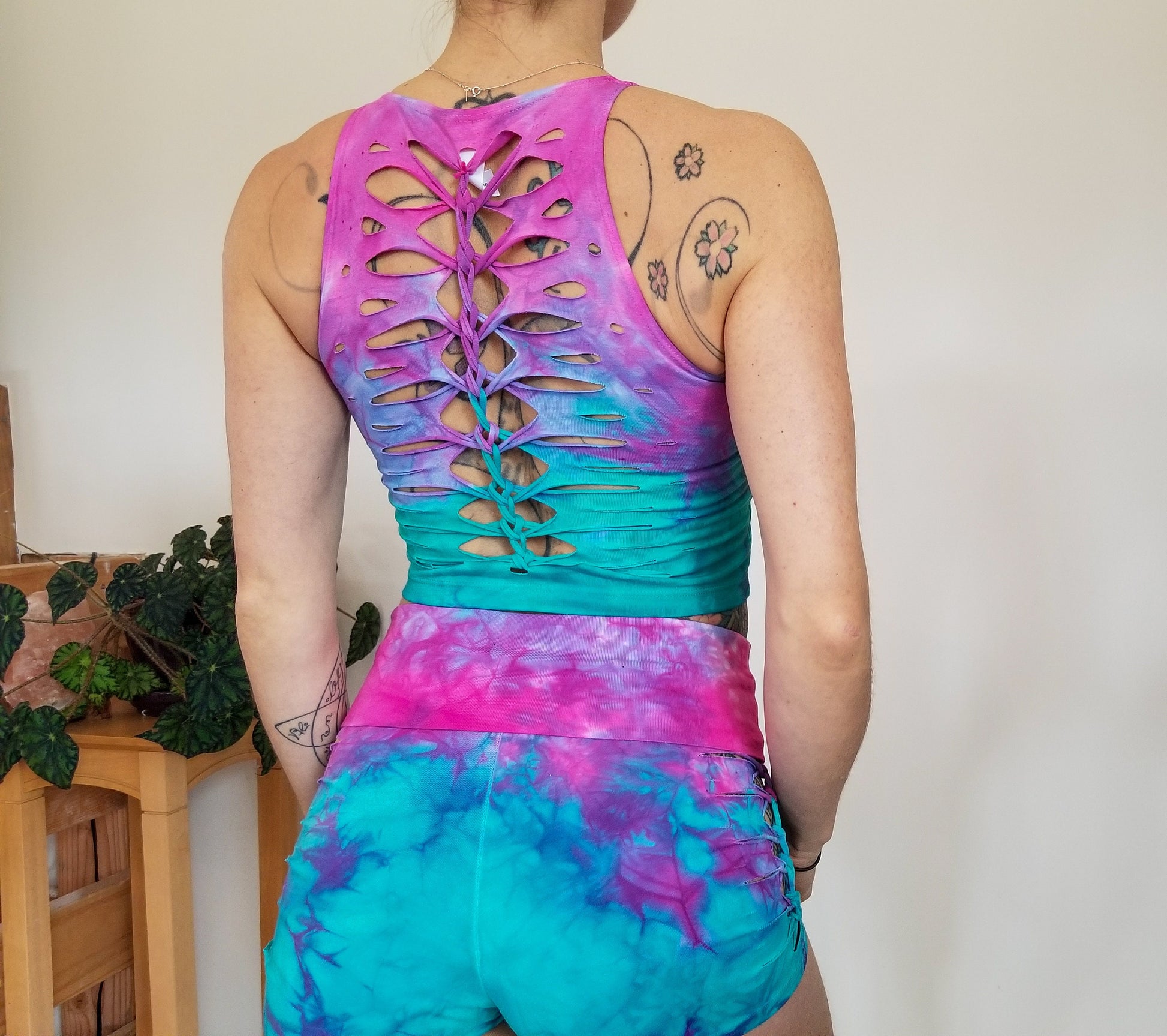 Cotton Candy Crop top Hand dyed Yoga Slit weave Fire hula hoop
