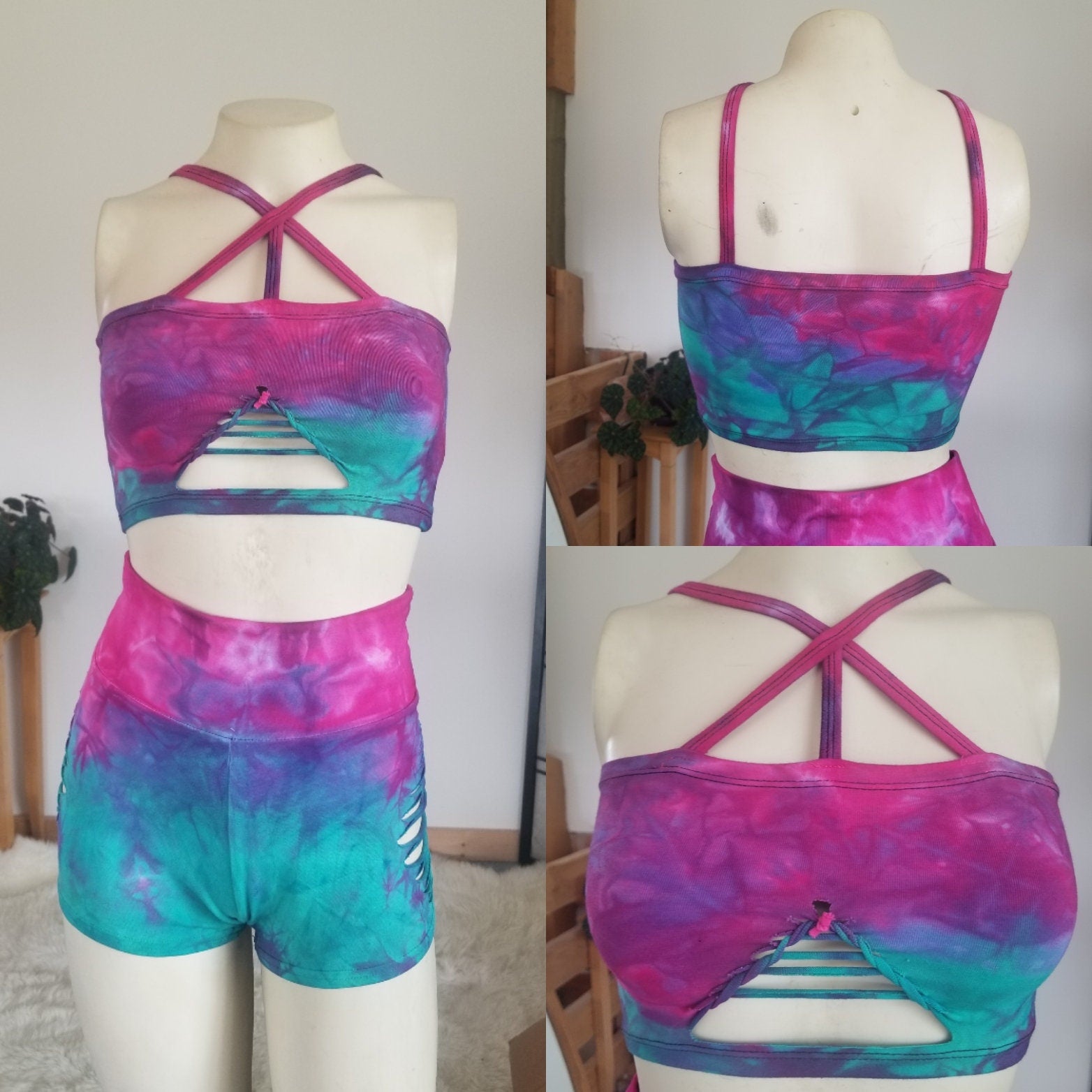 Cotton Candy Reversible Crop top Hand dyed Yoga Slit weave Fire hula hoop