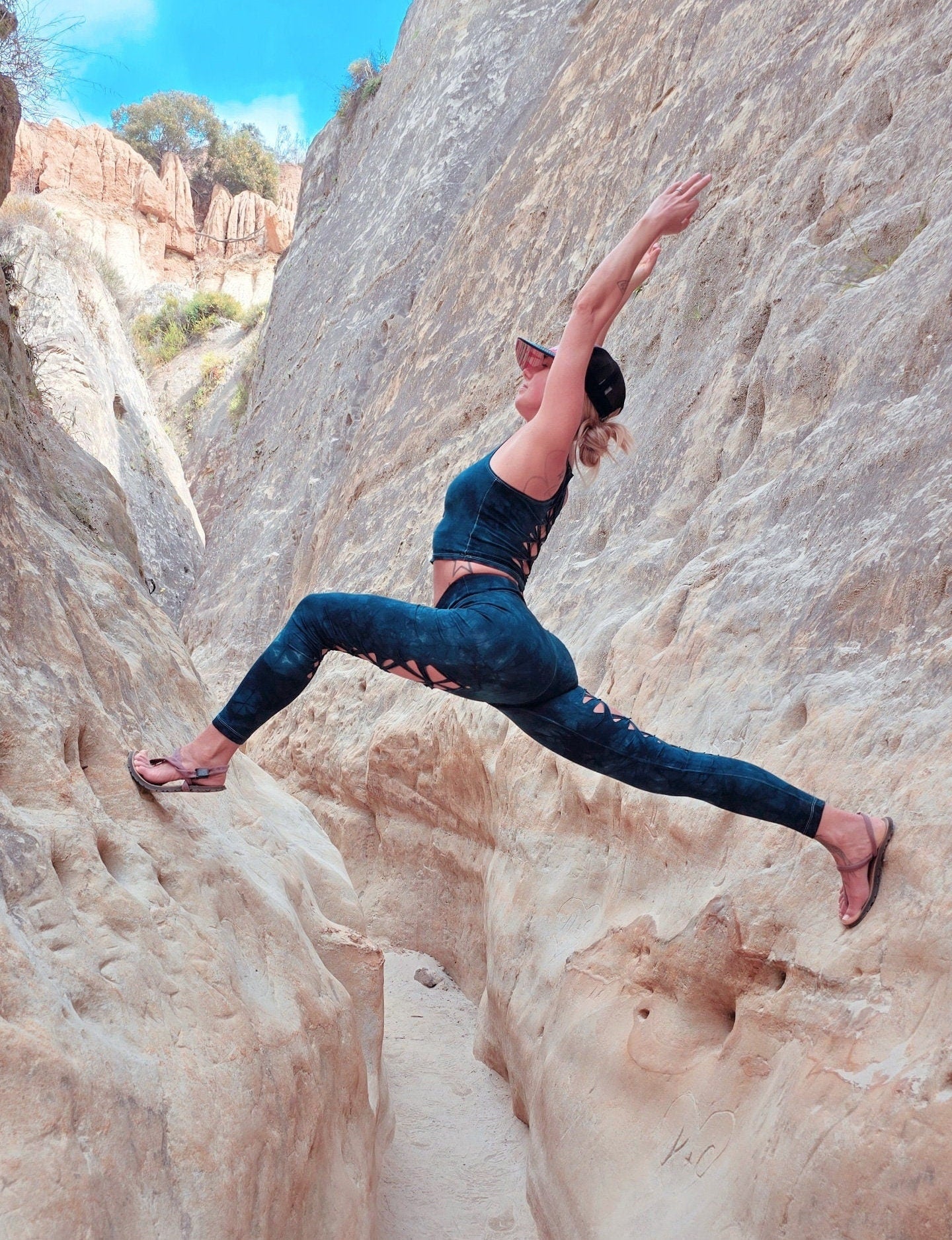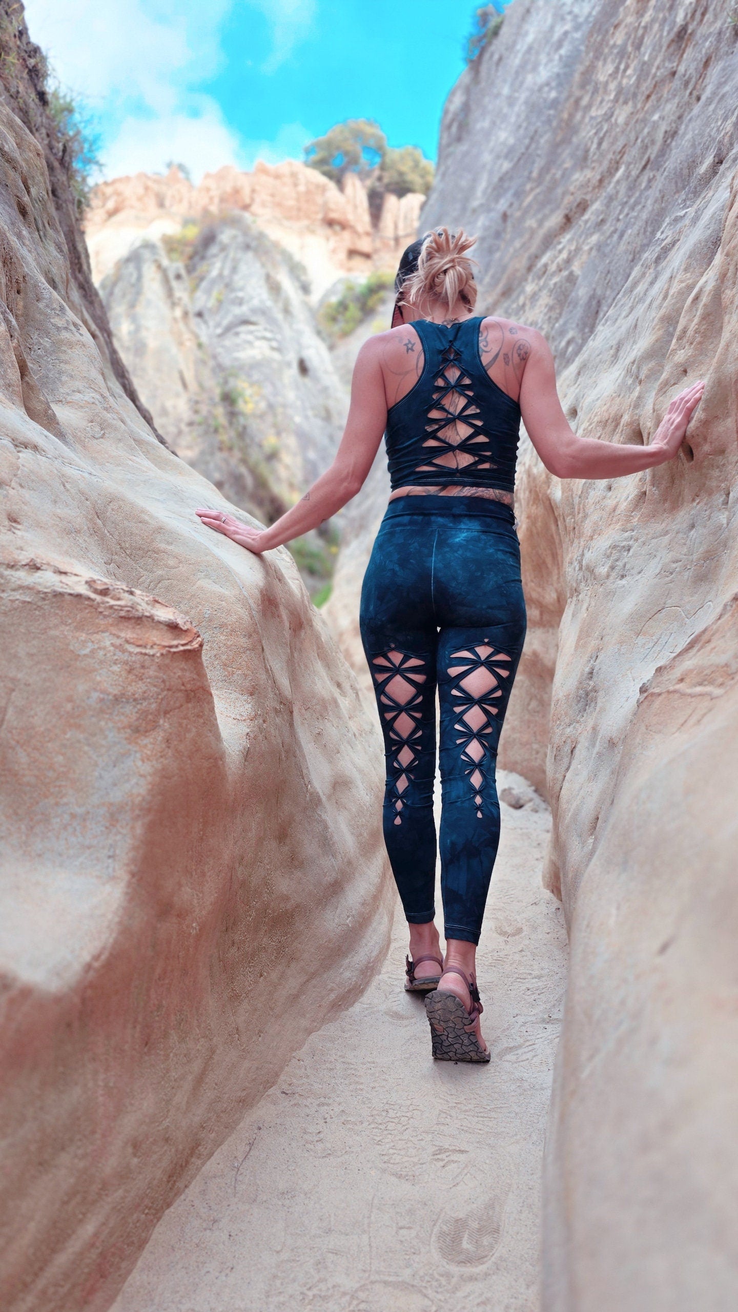 Dark Teal Cosmic Yoga leggings Hand Dyed