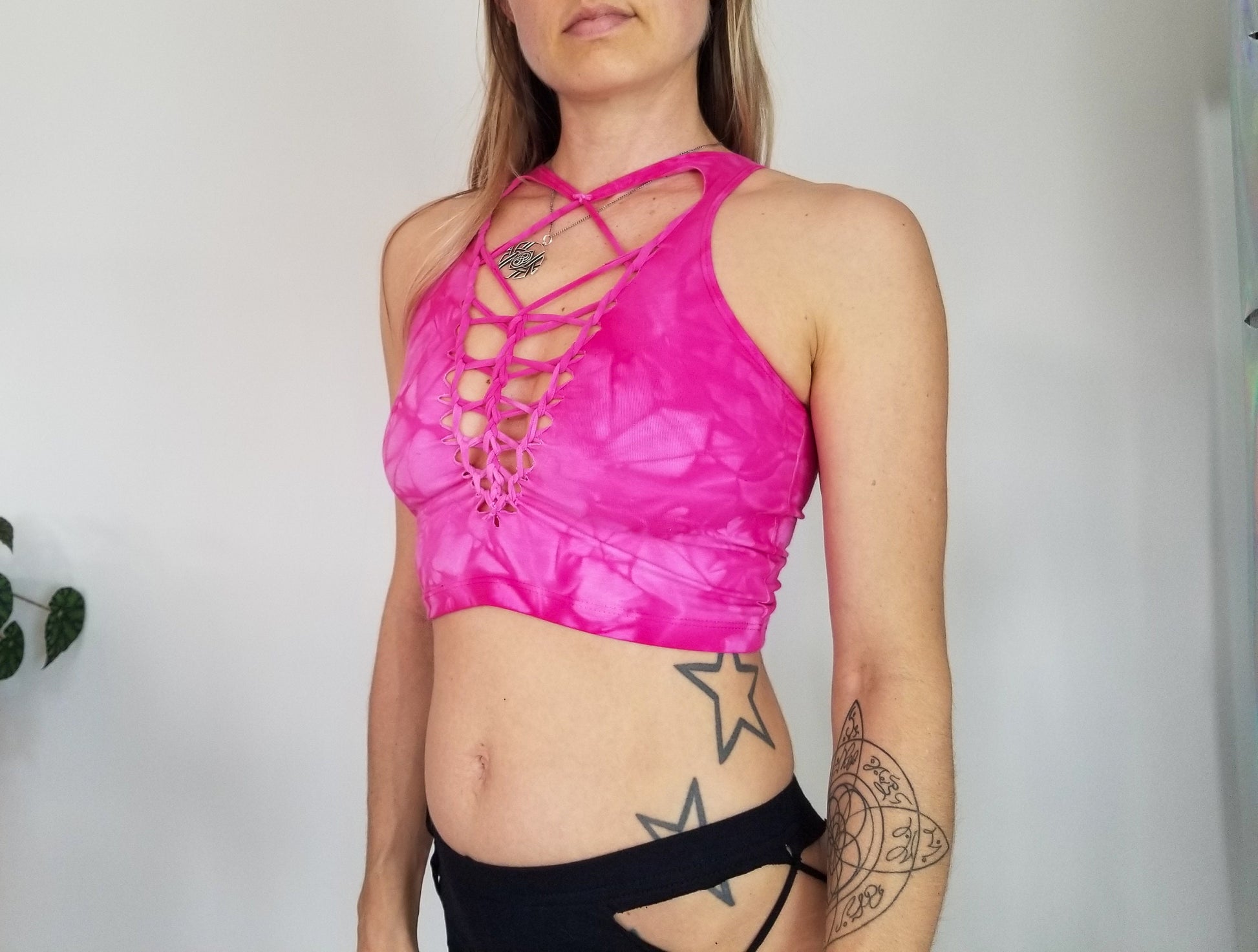 Dragon Fruit Crop top Hand dyed Yoga Slit weave Fire hula hoop