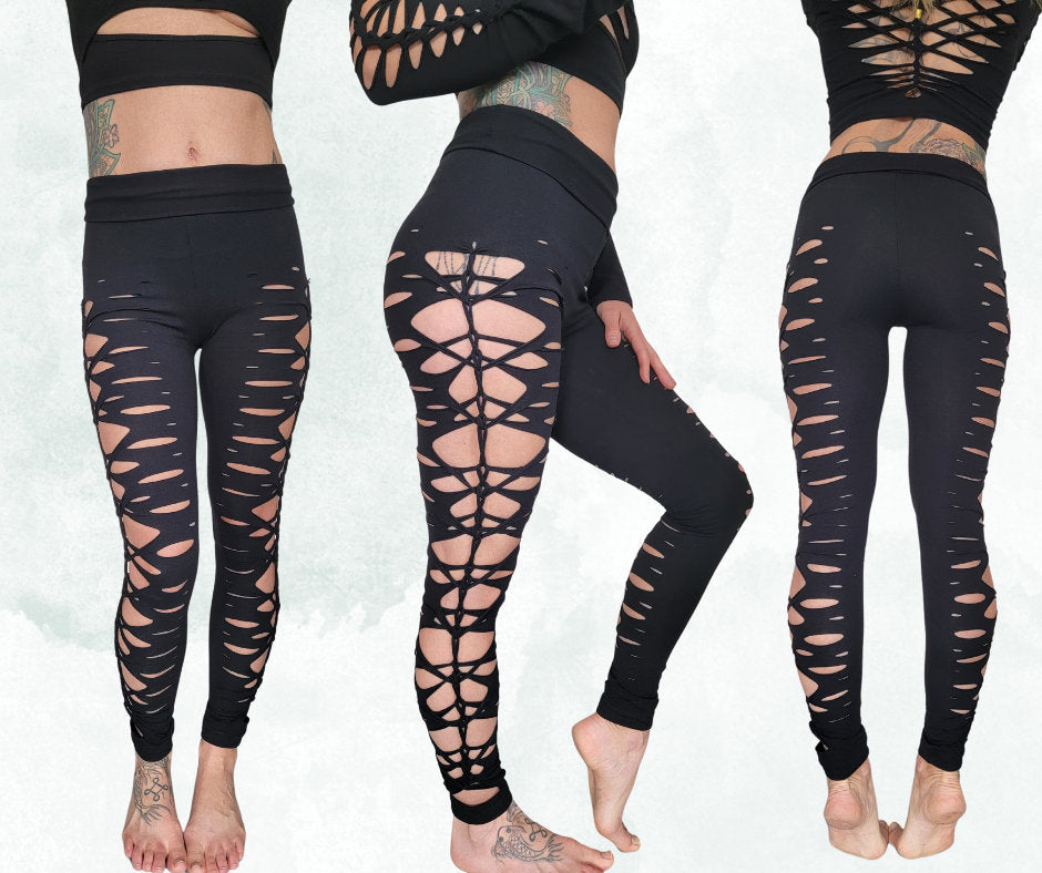 Electric Rebel Braided Yoga Leggings, boho, festival clothing, hoop fashion, ripped leggings, pole dance, slit weave
