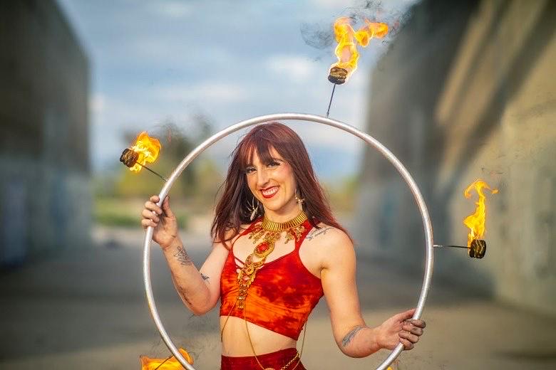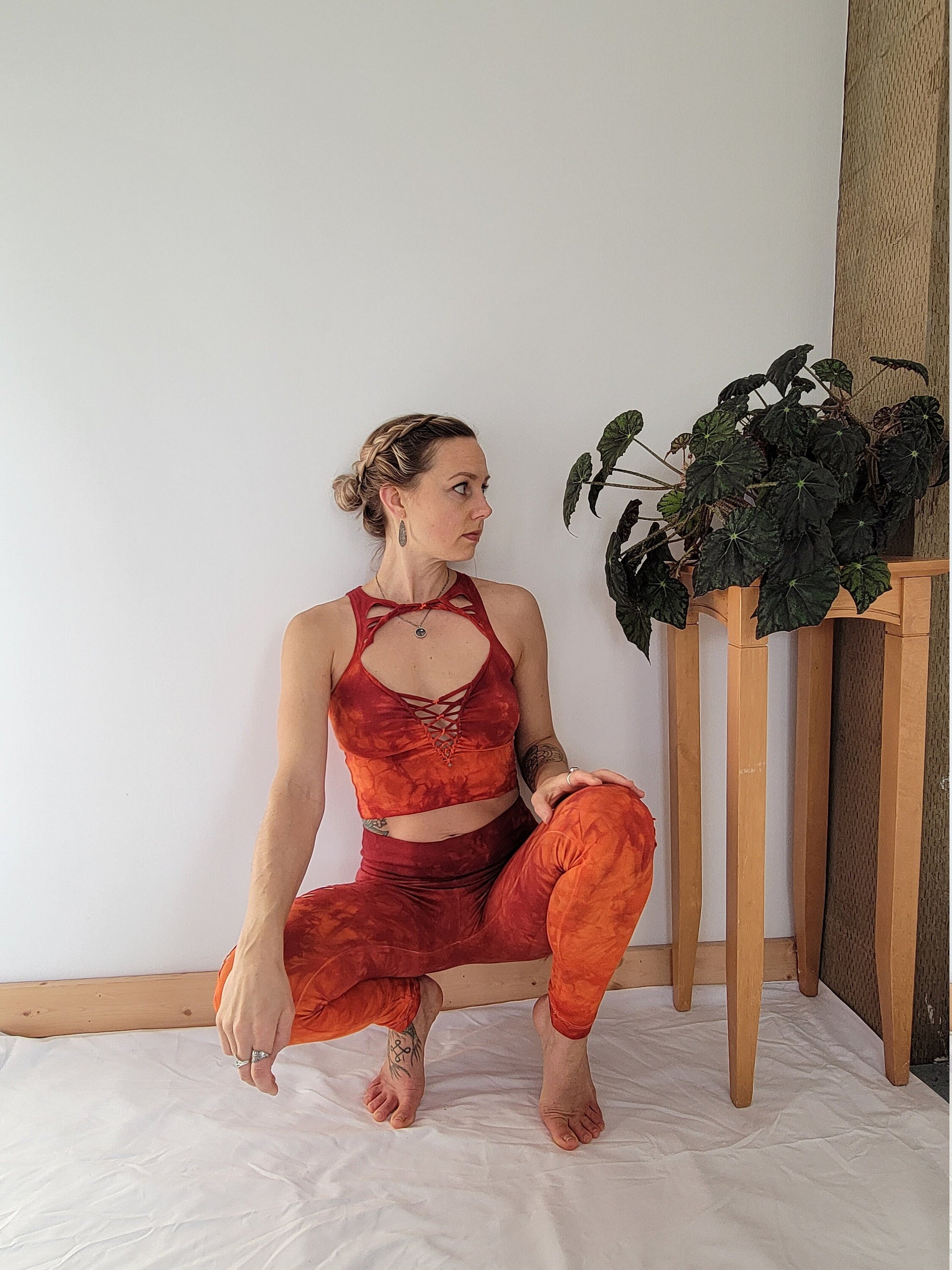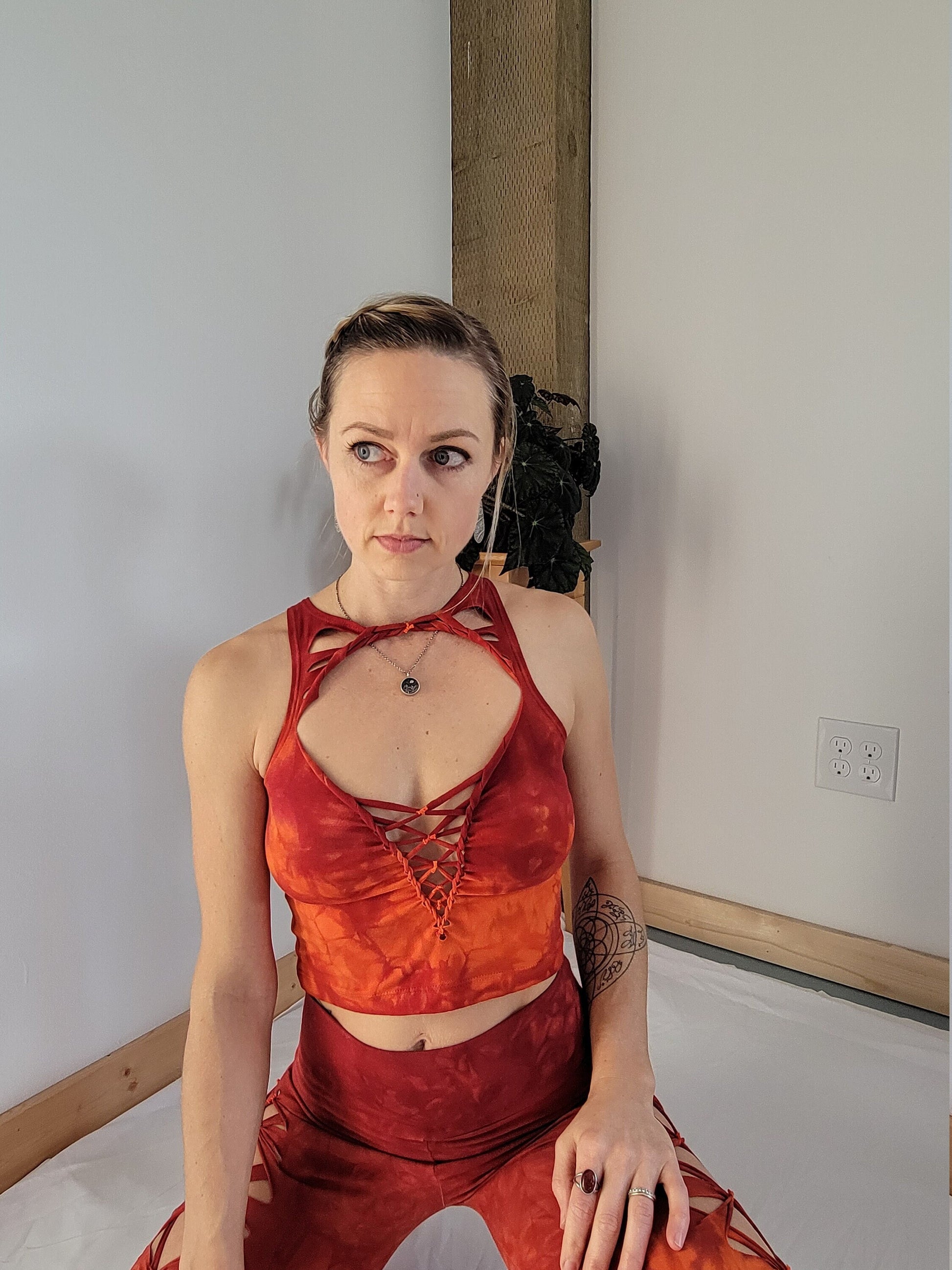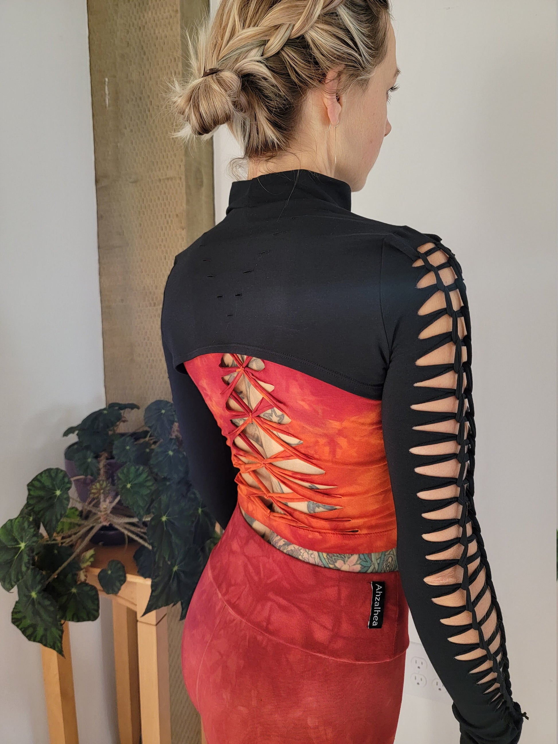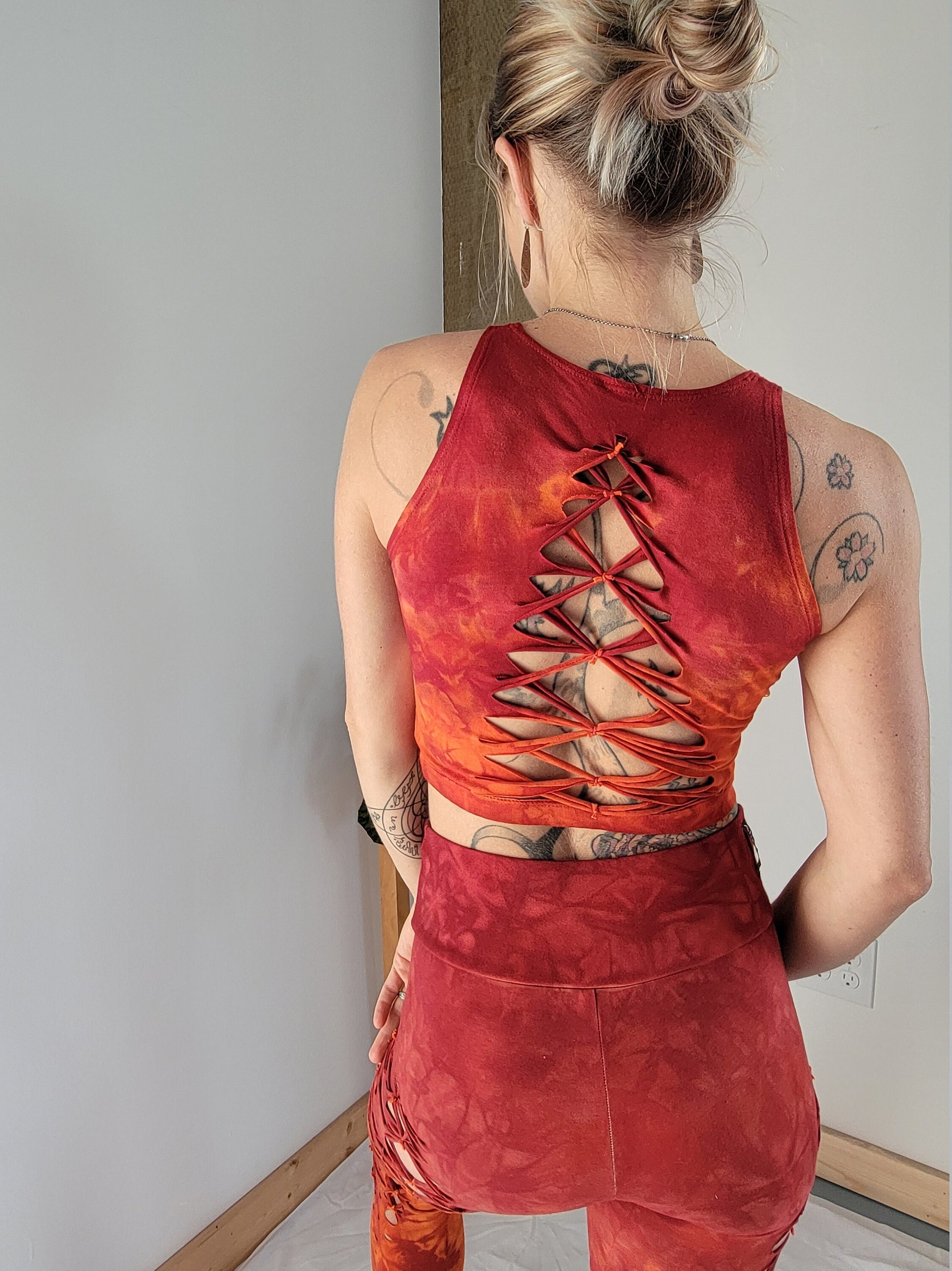 FIRE Crop top Hand dyed Yoga Slit weave Fire hula hoop