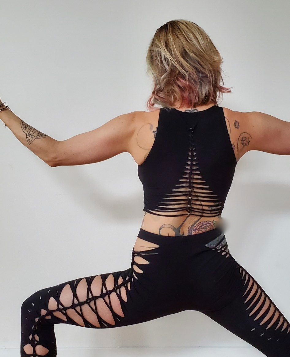 This tank is form fitting made with soft jersey fabric. Great for yoga, working out, dance, festivals.. and look fabulous with the Goddess leggings