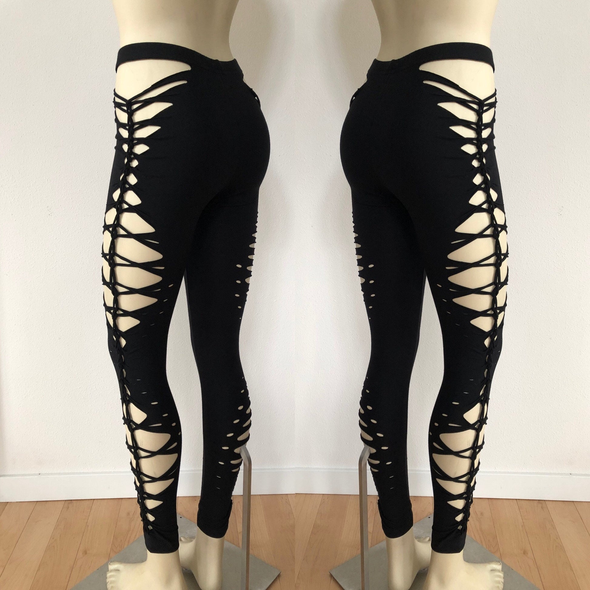 Goddess 2Braided Yoga Leggings, boho, festival clothing, hoop fashion, ripped leggings, pole dance, slit weave