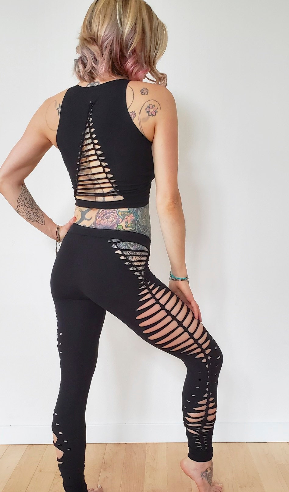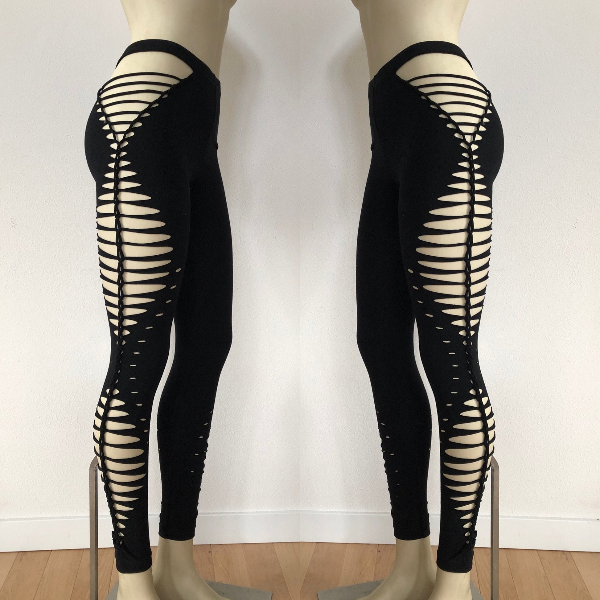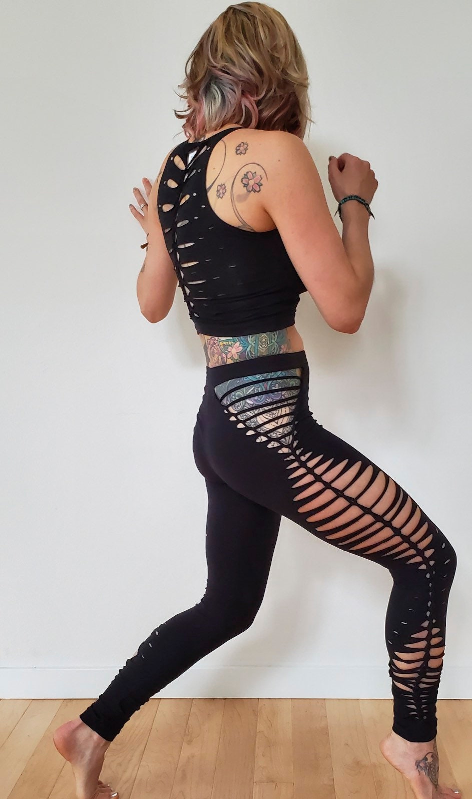 Goddess Braided Yoga Leggings, boho, festival clothing, hoop fashion, ripped leggings, pole dance, slit weave