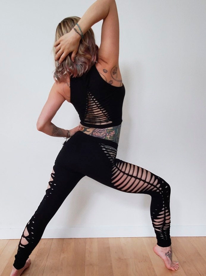 Embrace your inner GODDESS with these Leggings. They are subtly seductive and are made for the ones that like to make a statement. These are a statement at your next festival, on the dance floor, with your hoop, or your next aerial performance. Or a statement at that Pole Class. Braided and cut from upper hip to ankle. These leggings are super sexy.