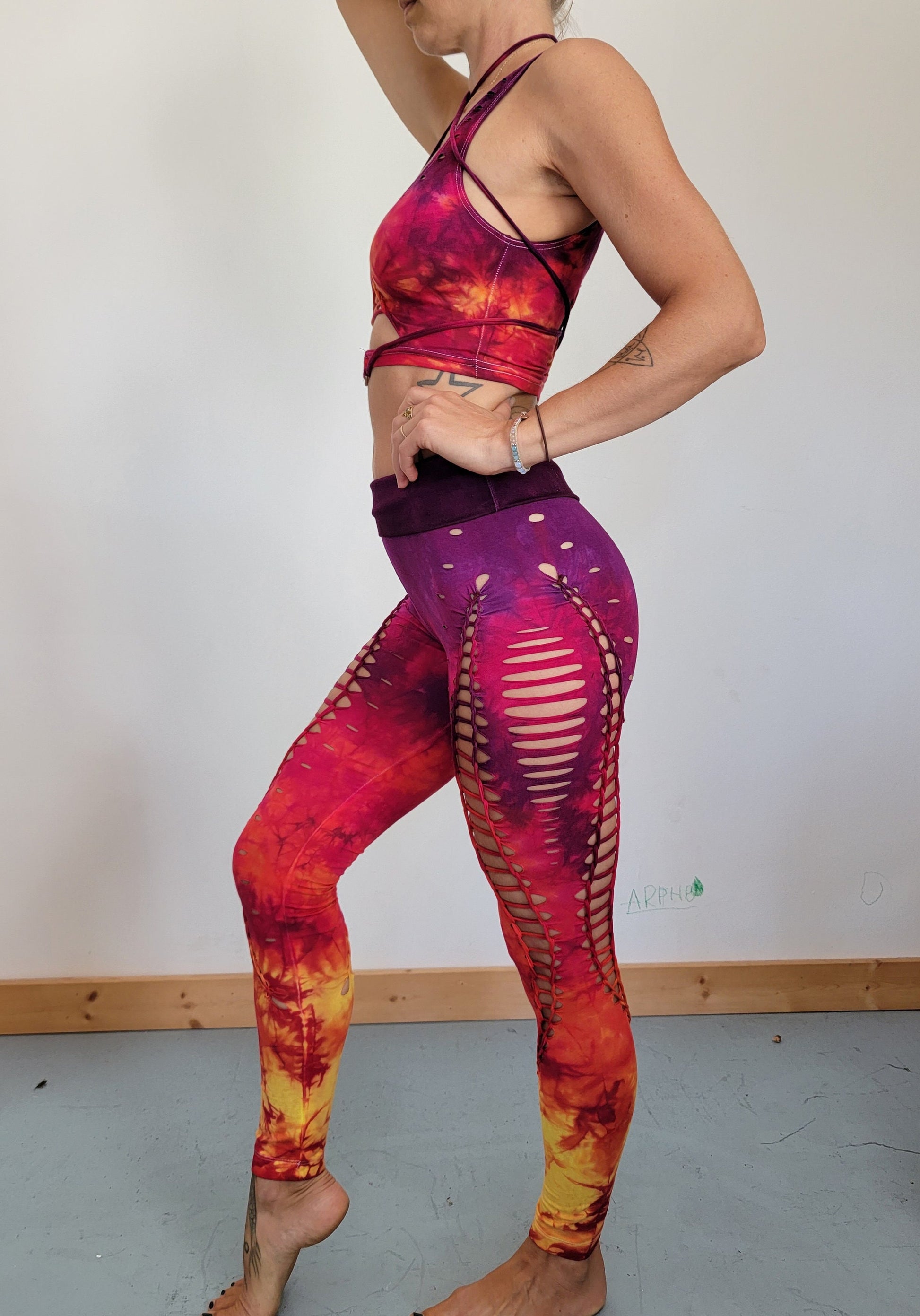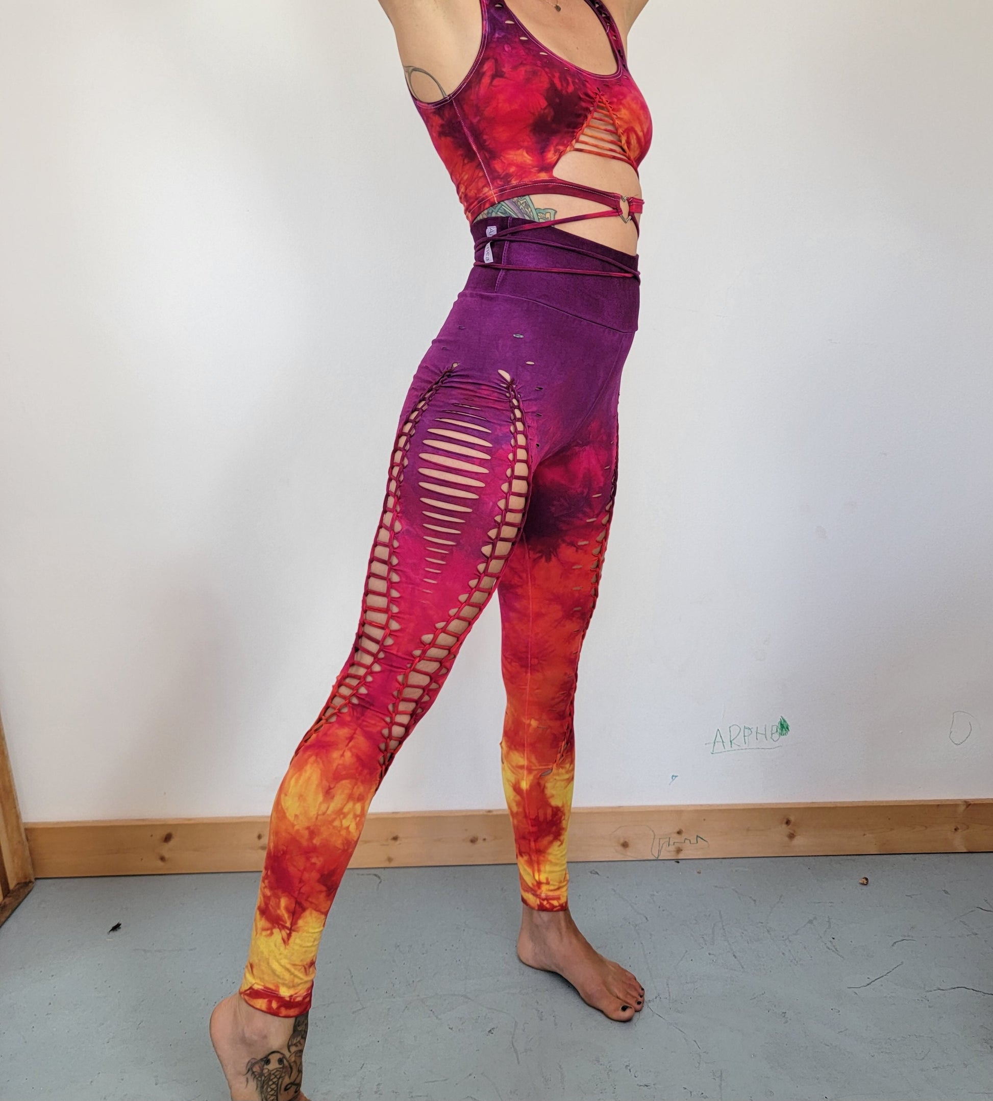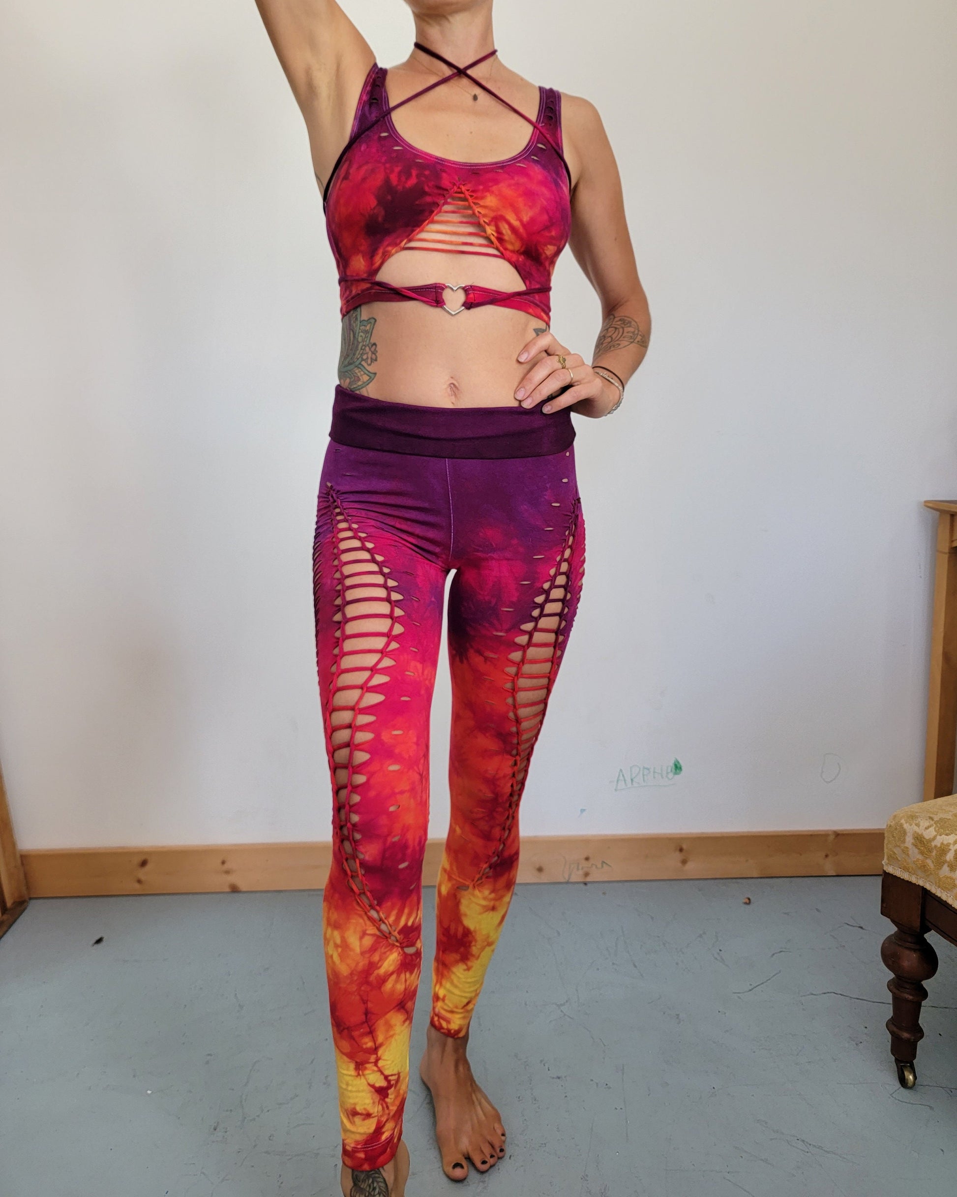 Lion Heart Yoga leggings Hand Dyed, fire safe, gift for her, hula hoop, slit weave