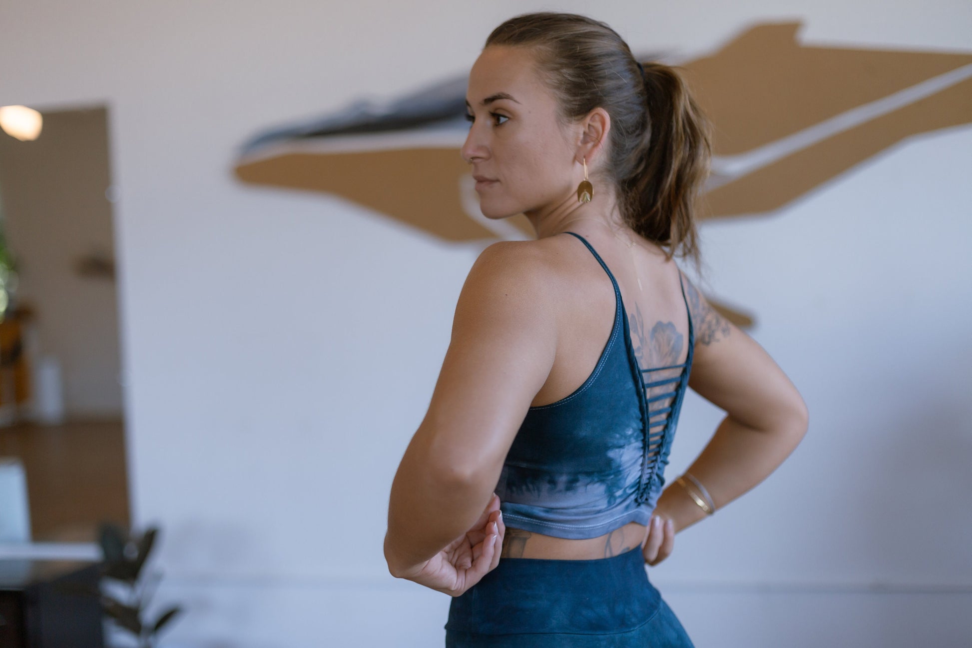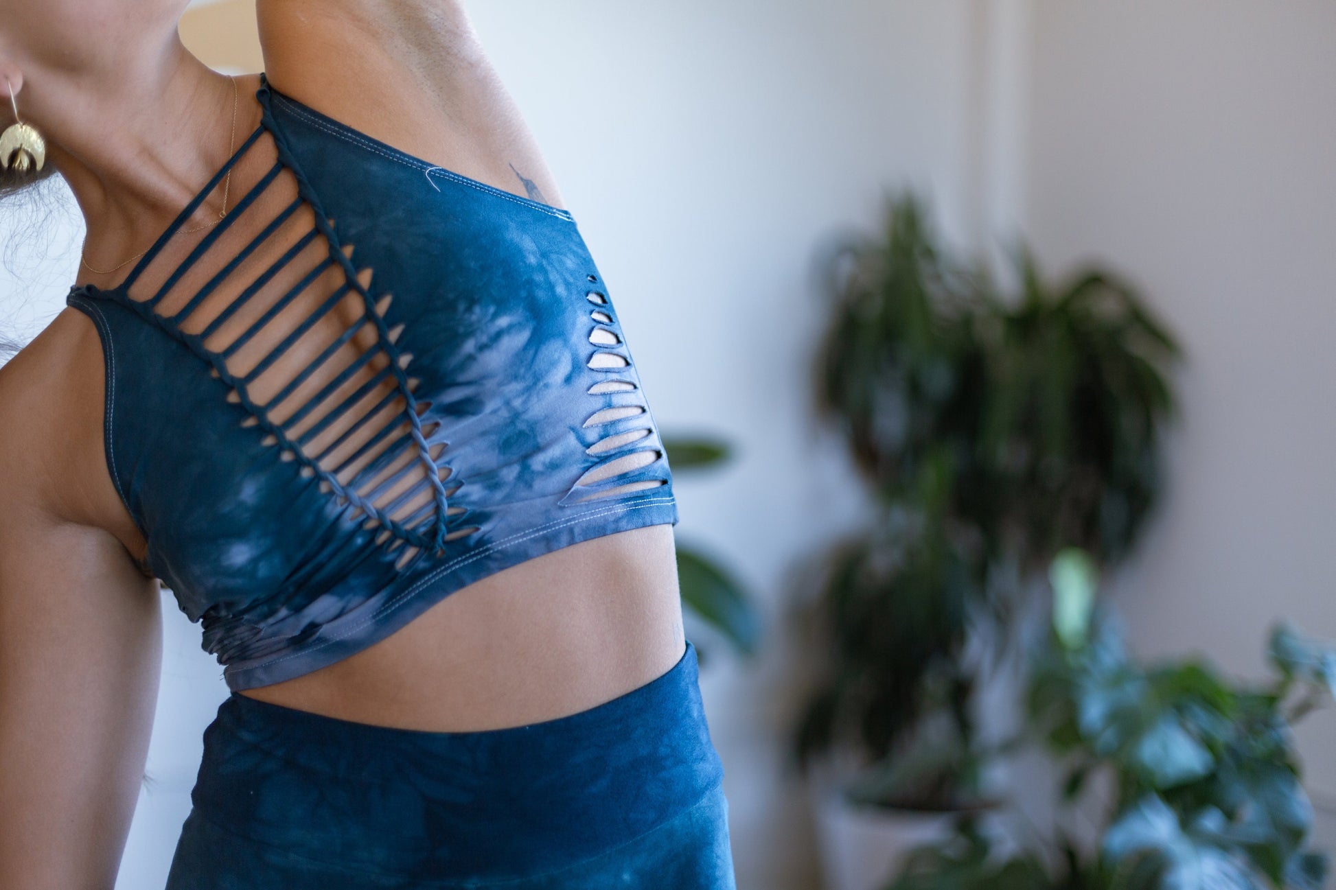 Navy Silver Reversible Crop top Hand dyed Yoga Slit weave Fire hula hoop