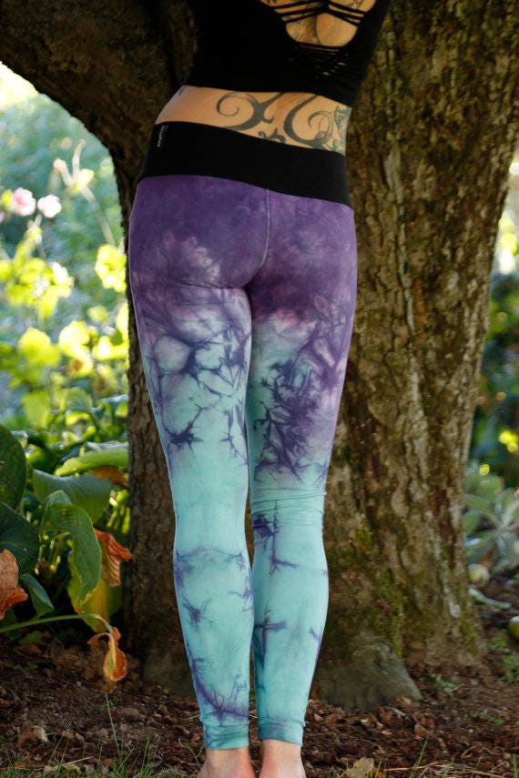 Hand Dyed leggings in a beautiful Purple to Sea Glass Ombre.