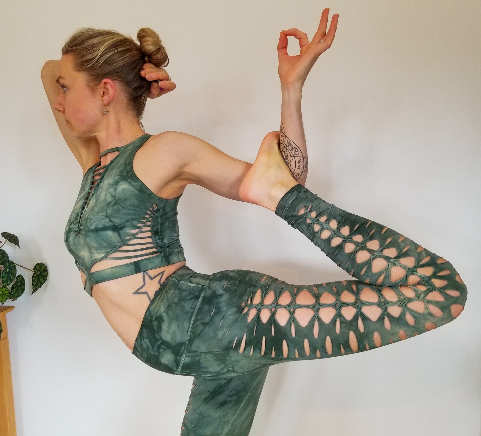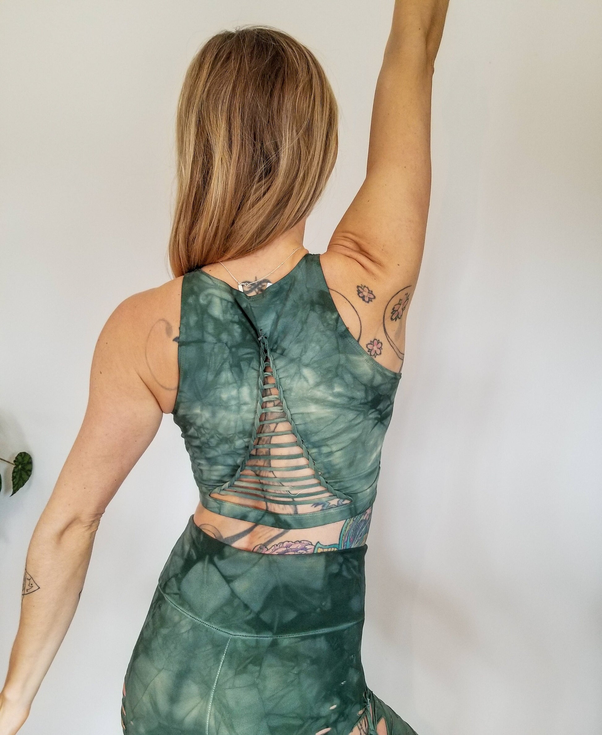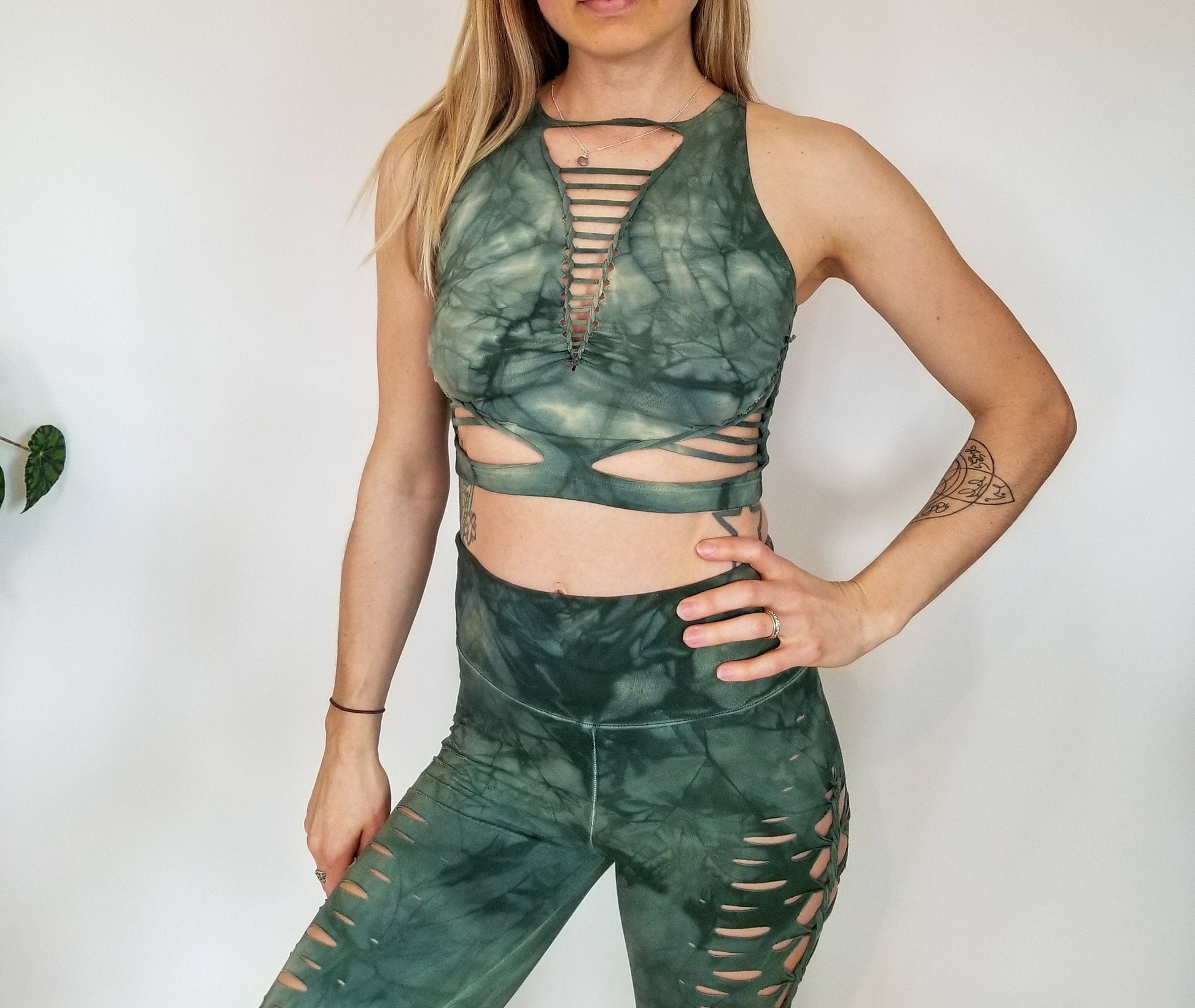 Sage Crop top Hand dyed Yoga Slit weave Fire hula hoop