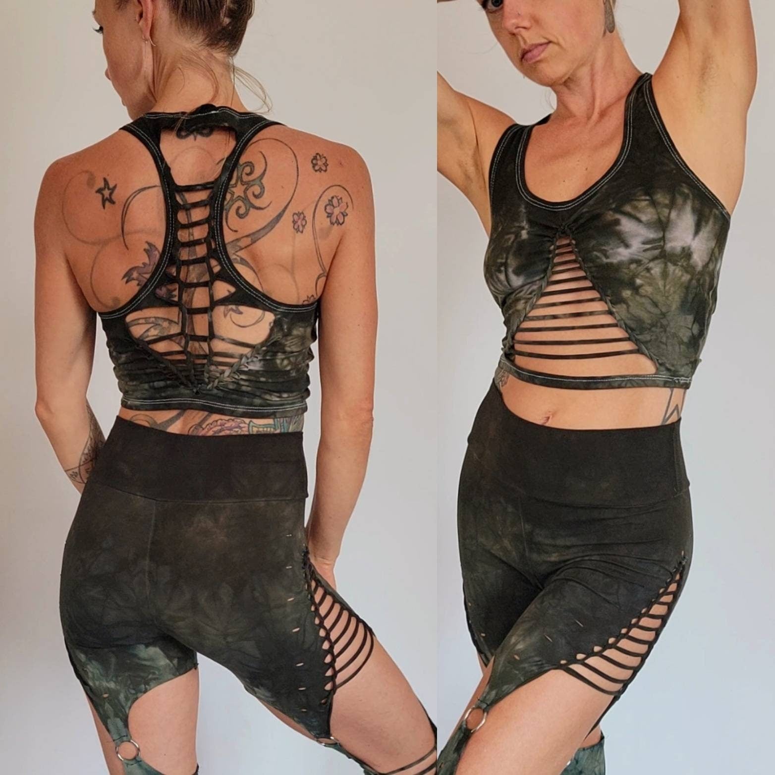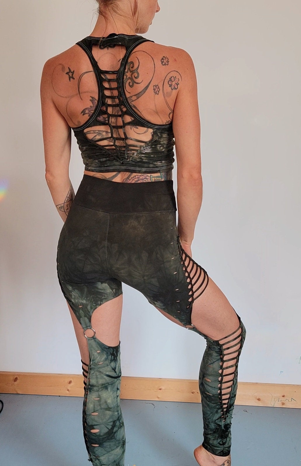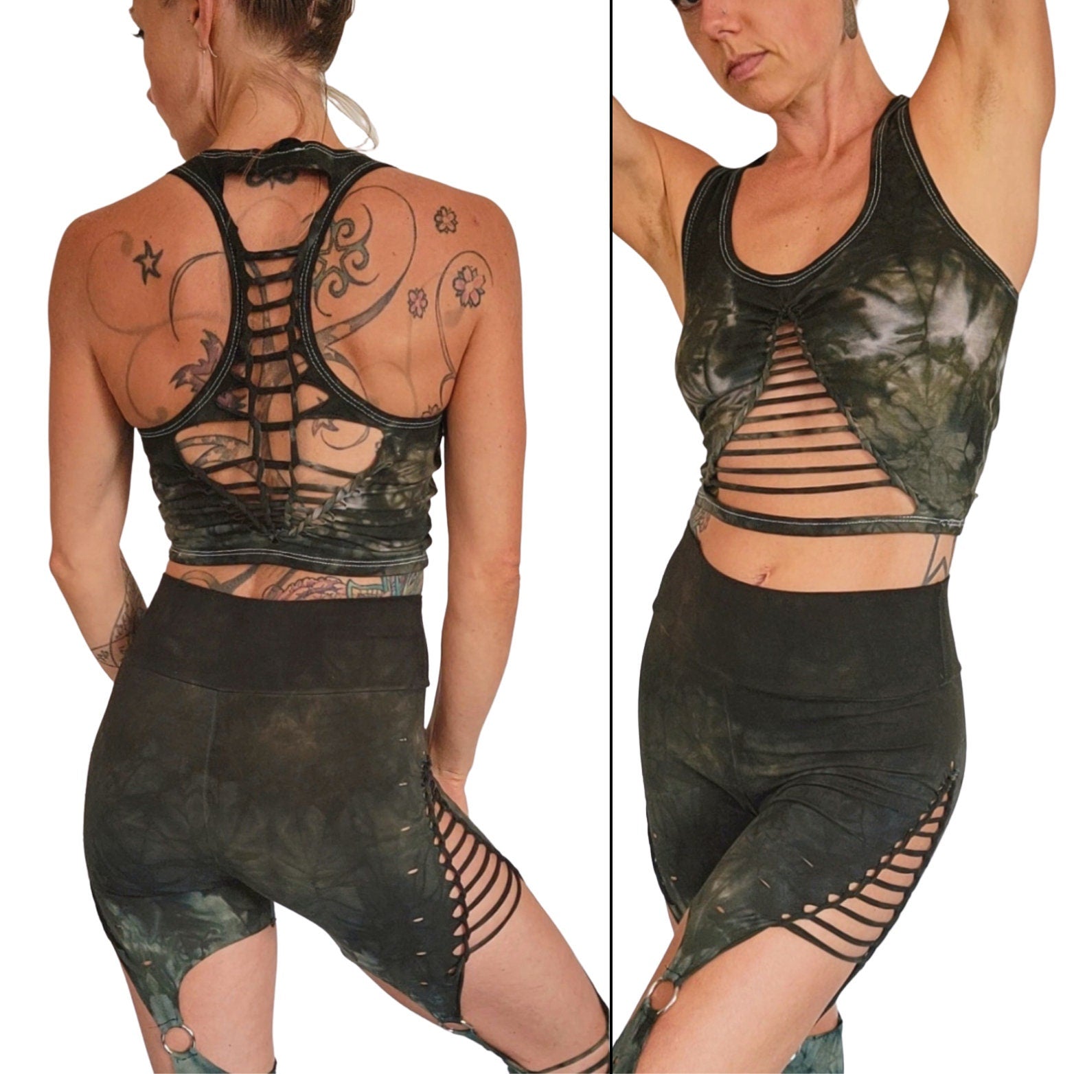 Sage Ombre Crop top Hand dyed Yoga Slit weave Fire hula hoop