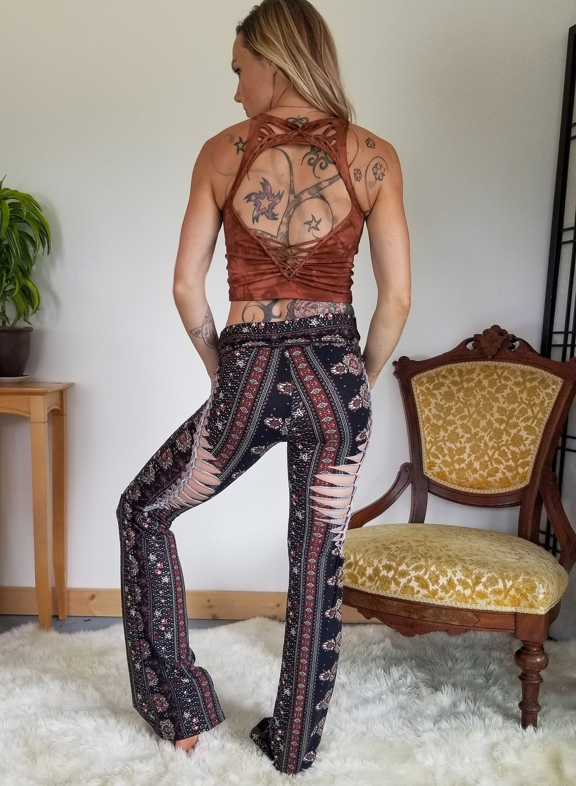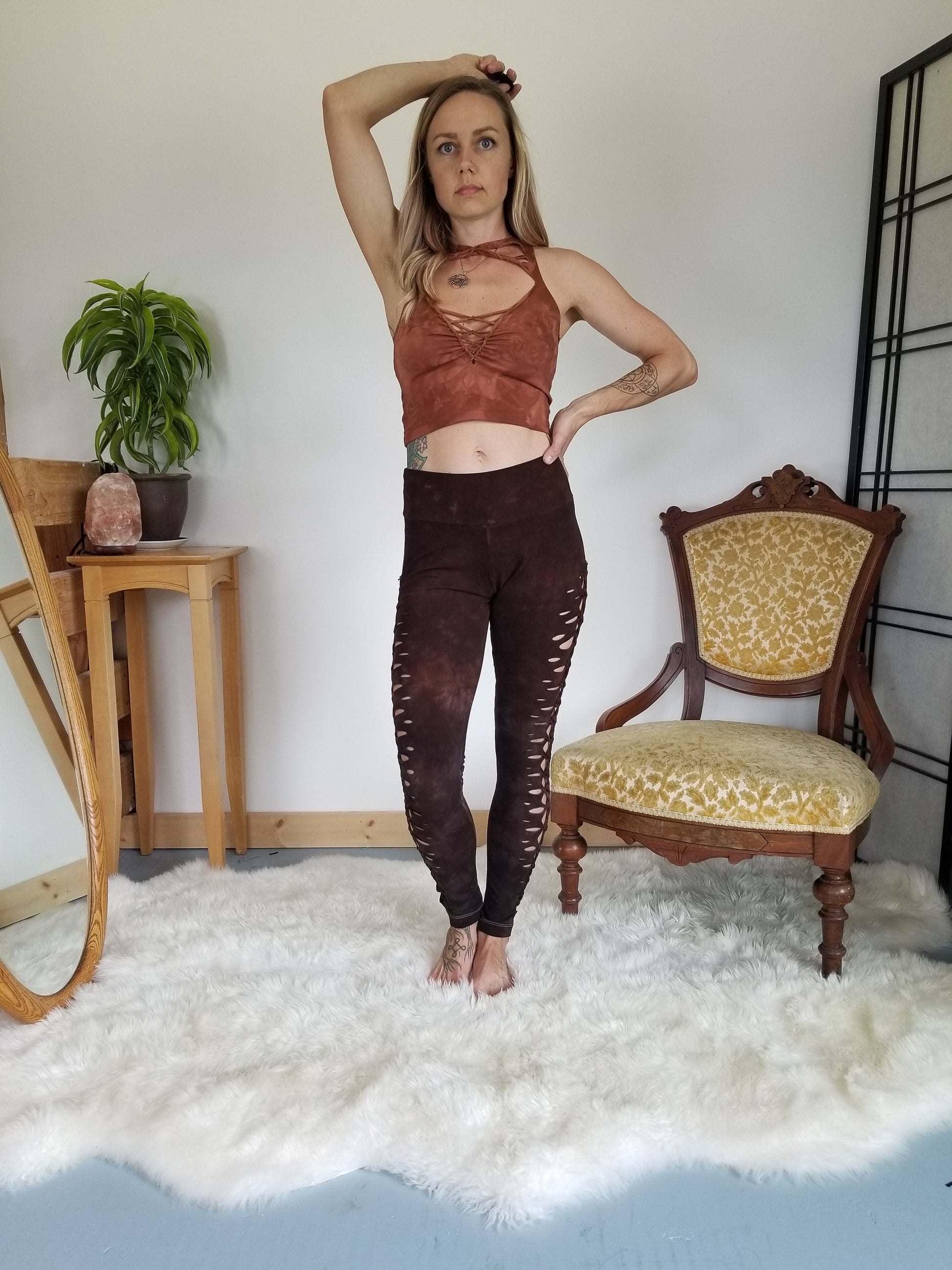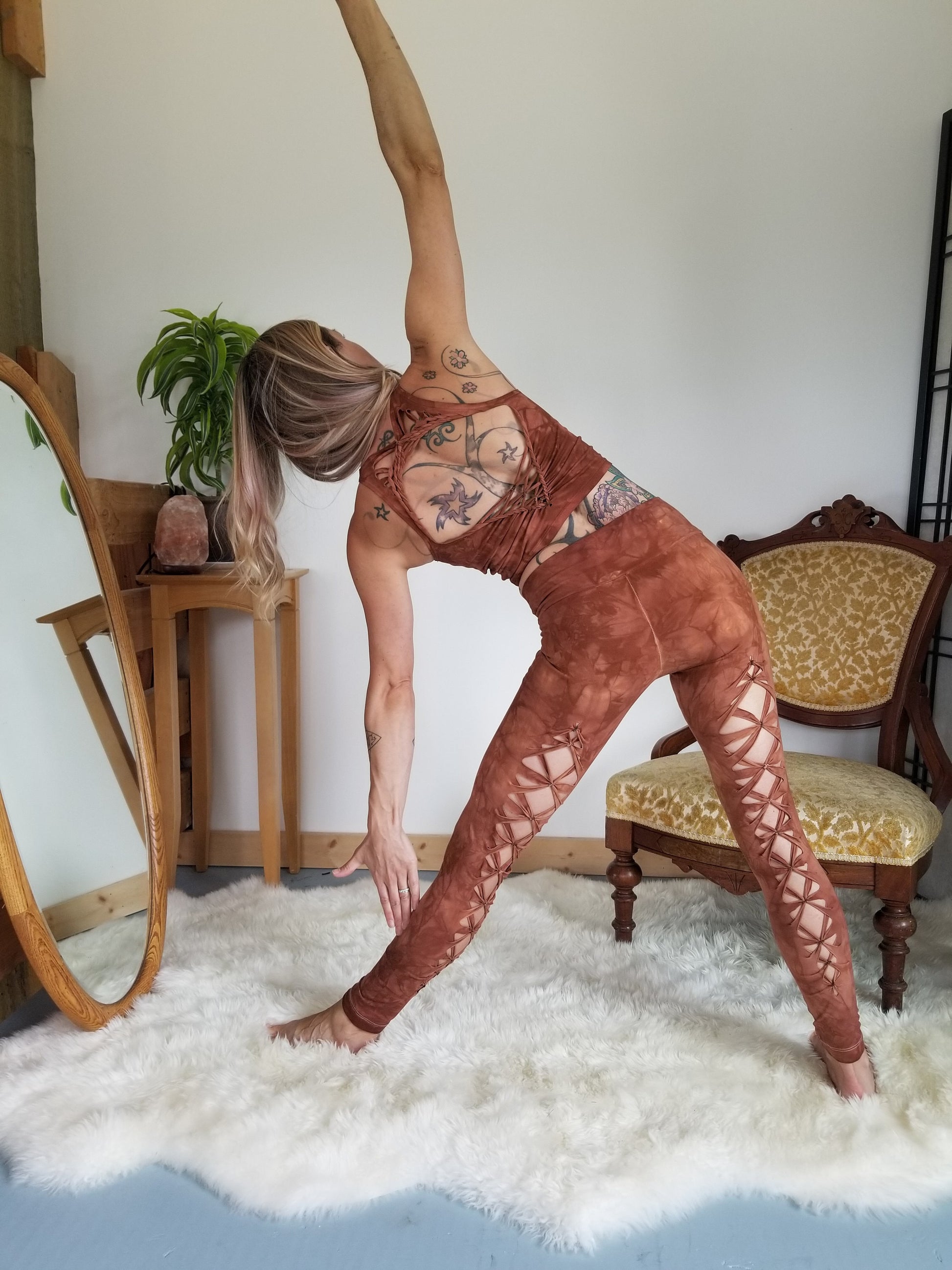 Terracotta Crop top Hand dyed Yoga Slit weave Fire hula hoop