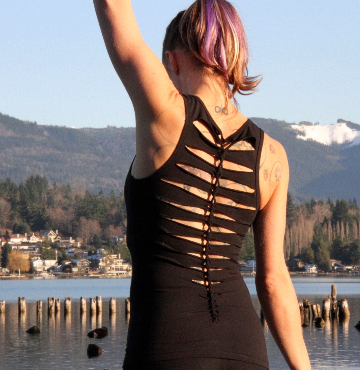 This is the tank to match the wild fern leggings. This tank is form fitting and made with thick soft jersey. Great for yoga, working out, dance, festivals..