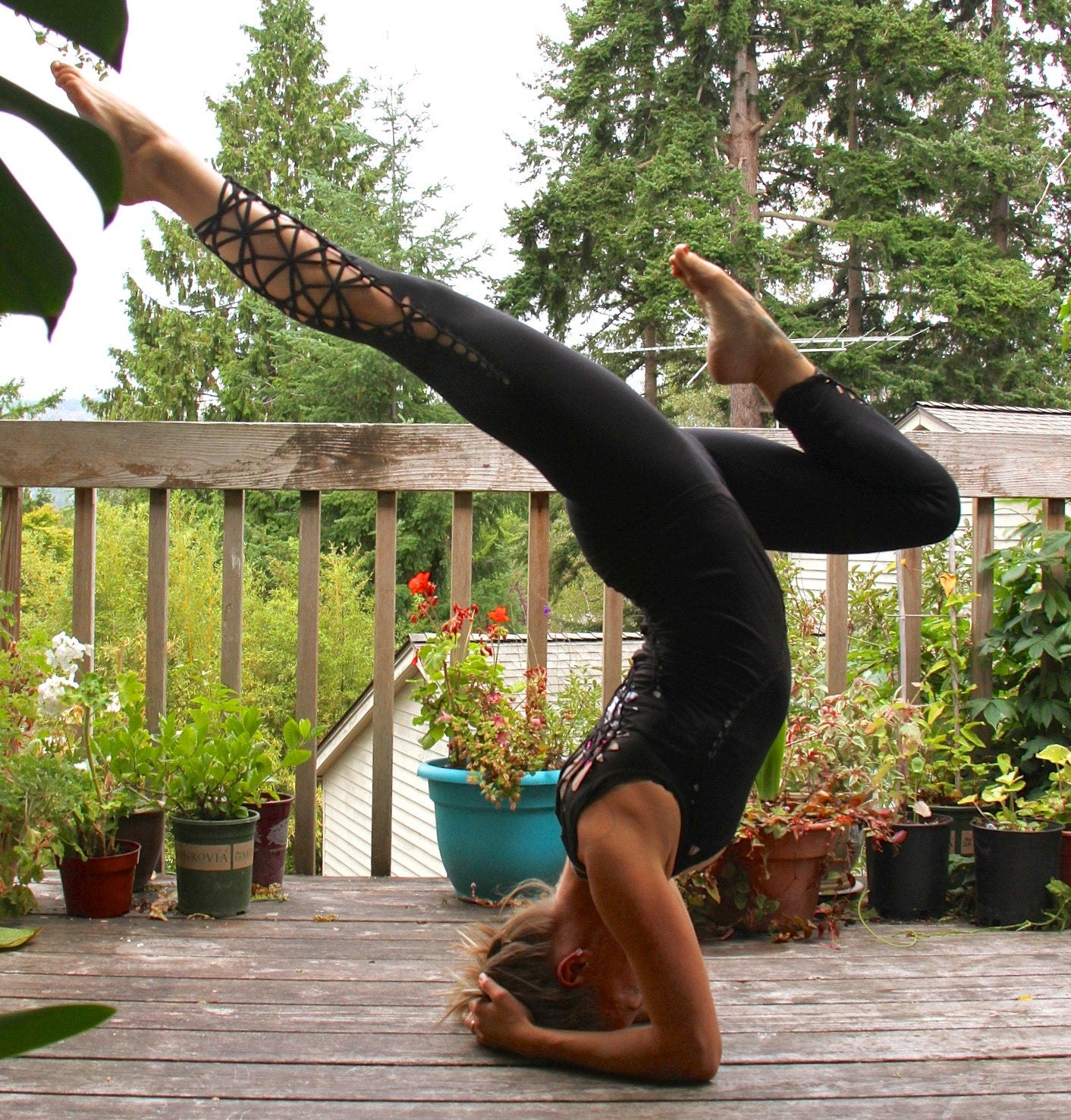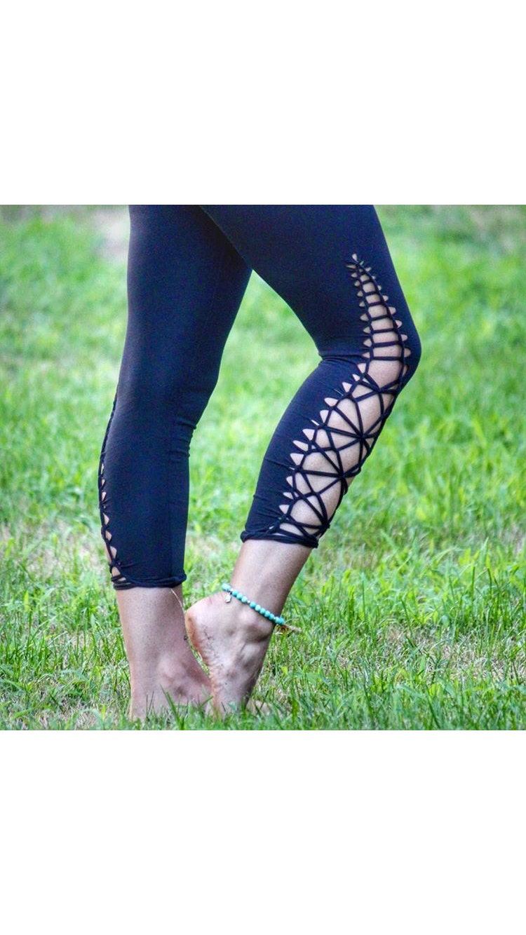 Spark up your yoga practice, dance the night away, or wander around town with these unique leggings. braided from middle thigh to ankle. super comfy and stretchy fabric.